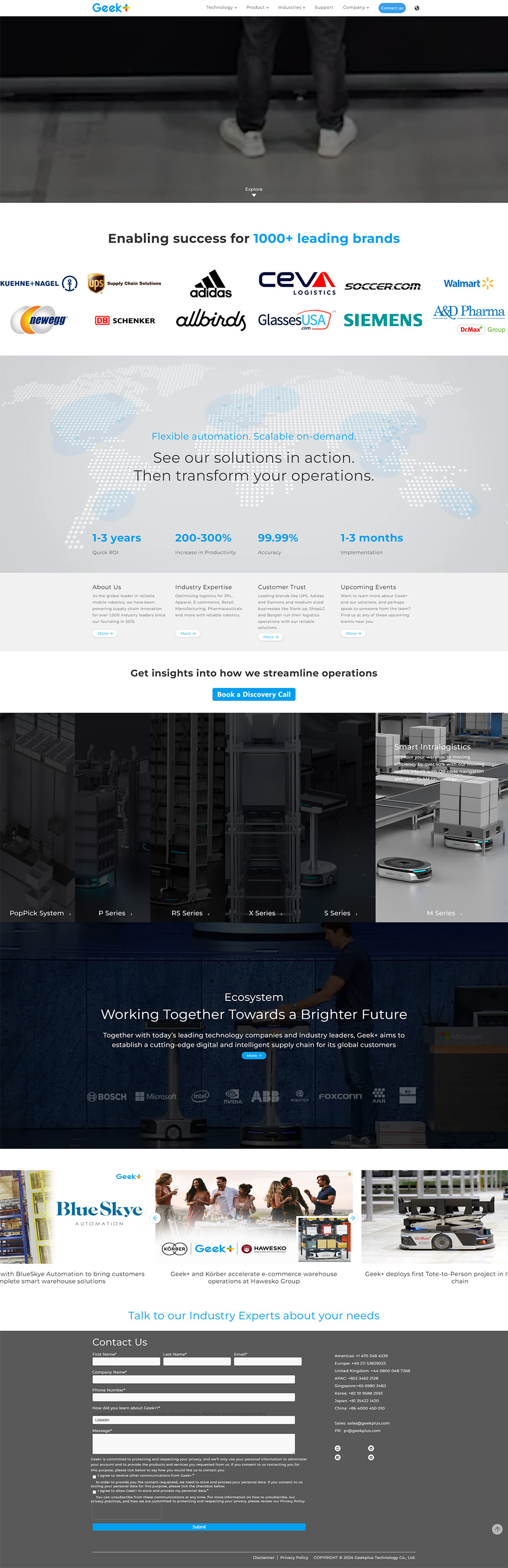 Geekplus is a global leader in mobile robotics technologies, providing innovative solutions for order fulfillment With over 1,000 industry leaders using our systems