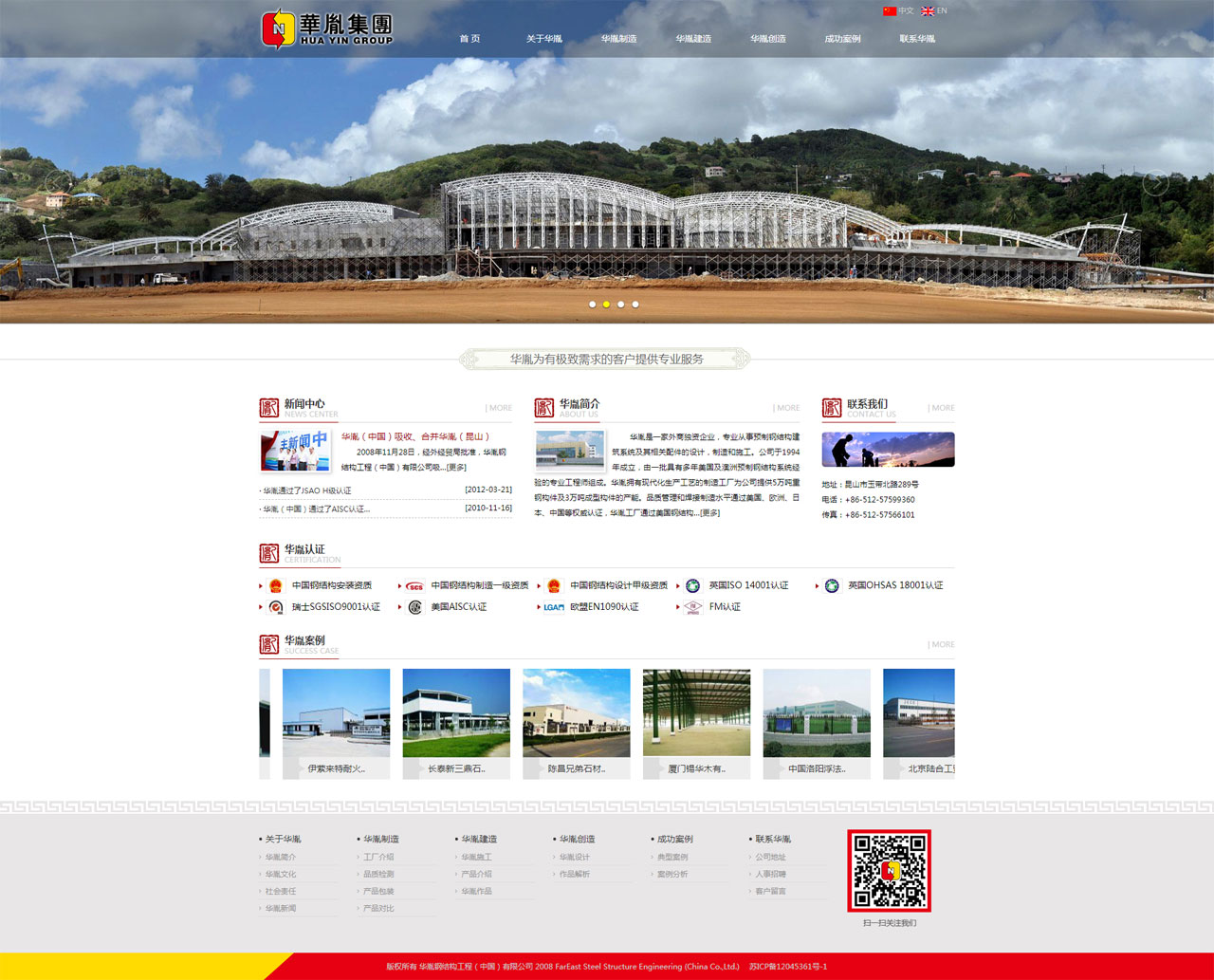 華胤是一家外商獨(dú)資企業(yè),專(zhuān)業(yè)從事預(yù)制鋼結(jié)構(gòu)建筑系統(tǒng)及其相關(guān)配件的設(shè)計(jì),制造和施工。公司于1994年成立,由一批具有多年美國(guó)及澳洲預(yù)制鋼結(jié)構(gòu)系統(tǒng)經(jīng)驗(yàn)的專(zhuān)業(yè)工程師組成。華胤擁有現(xiàn)代化生產(chǎn)工藝的制造工廠(chǎng)為公司提供5萬(wàn)噸重鋼構(gòu)件及3萬(wàn)噸成型構(gòu)件的產(chǎn)能。品質(zhì)管理和焊接制造水平通過(guò)美國(guó)、歐洲、日本、中國(guó)等權(quán)威認(rèn)證,華胤工廠(chǎng)通過(guò)美國(guó)鋼結(jié)構(gòu)協(xié)會(huì)質(zhì)量認(rèn)證(AISC),德國(guó)LGA焊接體系認(rèn)證,通過(guò)荷蘭DNV、瑞士SGS ISO9001質(zhì)量體系認(rèn)證,部分產(chǎn)品獲得FM全球公司(FM Approvals)認(rèn)證,設(shè)計(jì)與施工分別獲得了中國(guó)工程設(shè)計(jì)甲級(jí)證書(shū)與中國(guó)鋼結(jié)構(gòu)制造企業(yè)二級(jí)資質(zhì)證書(shū)。所有制造流程及質(zhì)量控制遵照標(biāo)準(zhǔn)作業(yè)程序。